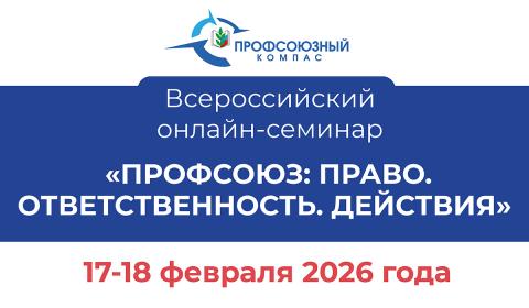 17—18 февраля состоится Всероссийский онлайн-семинар «Профсоюзный компас» по теме «Профсоюз: Право. Ответственность. Действия».